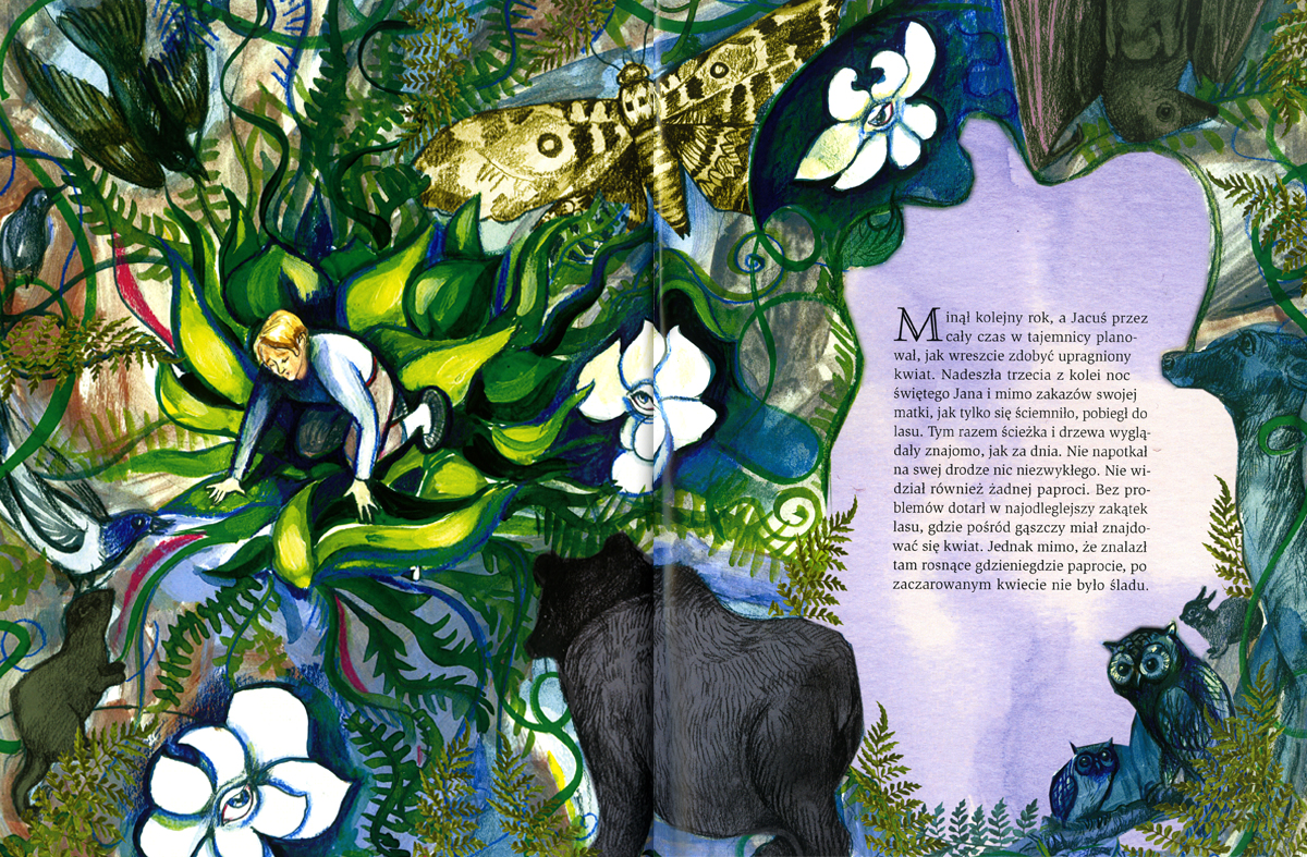 Józef Kraszewski is a Polish romantic writer. This story for children and adults shows us the mysteriousness and the power of a beautifull hidden flower. A traditional Polish tale illustrated by an incredibly talented plastic artist Joanna Styrylska.