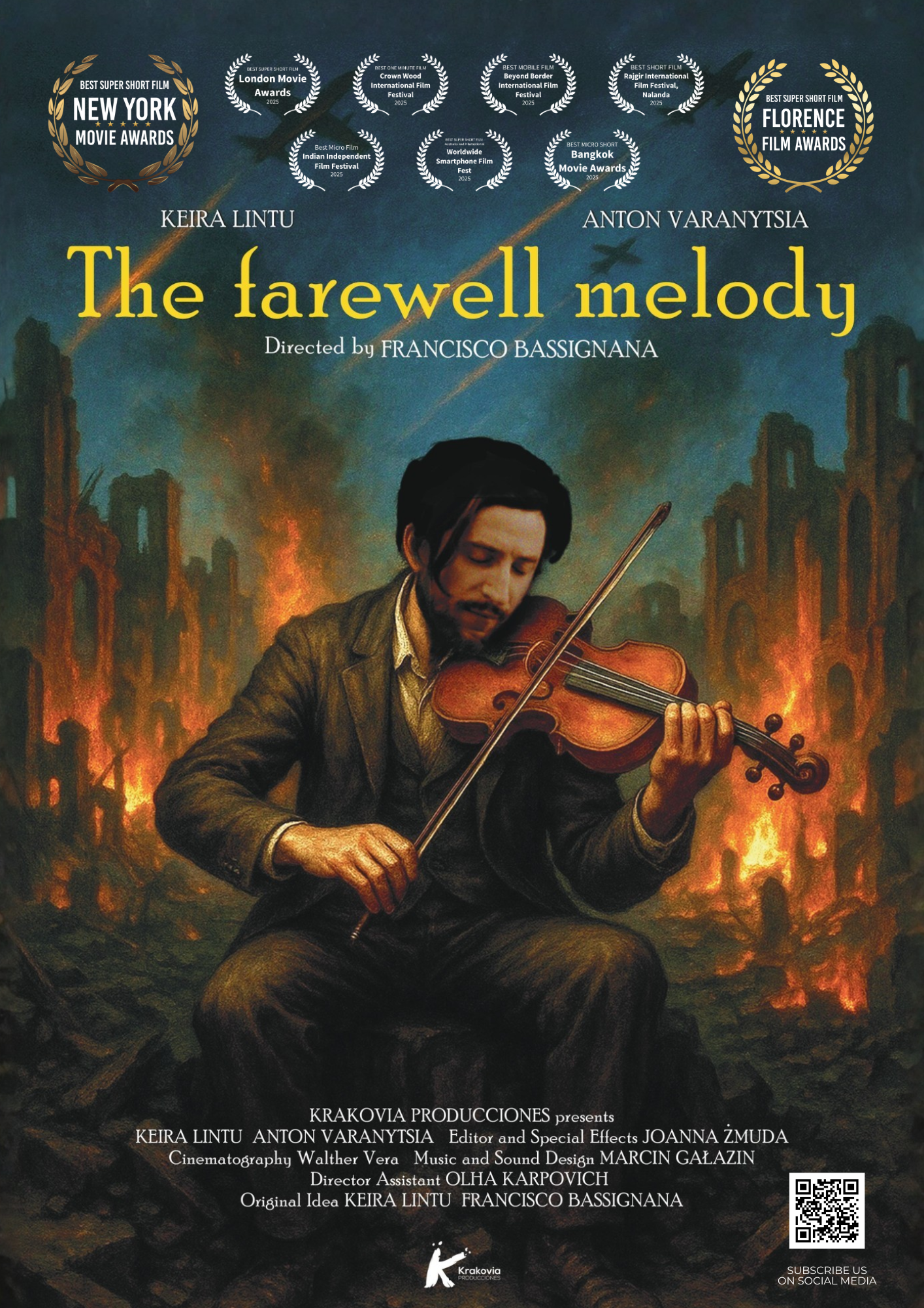 What WE DO | Krakovia Film Production | The farewell melodyThe farewell melodyA girl walks around the street of a city and she has extrange visions that finally are connected with the War.This film is a tribute to the Ukrainians dead artists in the Russian Ucrainian war.Stills from the movieShare this addres by QR code